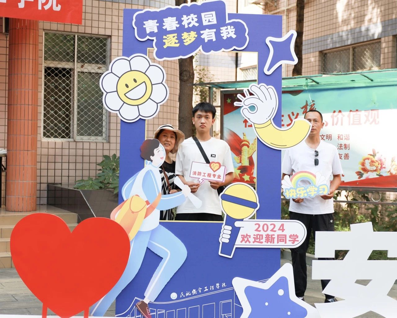 在这里,新生们和同学、朋友、家人留下合影