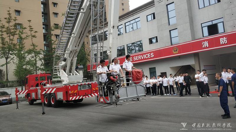 在广汉消防大队的精心组织和安排下,消防工程专业学生参观了消防专用的车辆器材装备,与各种型号的消防车、消防器材进行了“零距离”接触。消防大队张毅波中队长为学生们详细讲解了各类消防车辆、空气呼吸器、无齿锯等常用消防器材的使用方法和灭火防护服、头盔等个人防护装备的作用,为同学们上了一堂紧贴实际的消防课。同学们还试穿了防护服装、操作了切割器,登上了消防车的液压升高平台亲身体验了一次当“消防员”的感觉。