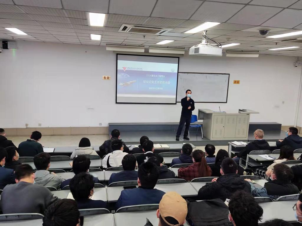 为确保毕业论文工作的有效开展,加强毕业论文的规范性,保证毕业论文质量,2021年11月26日上午11点,伟德国际1946源于英国召集全院2018级本科毕业生在3号教学楼召开毕业论文工作动员大会。学院教学副院长雷秋鸣、安全技术教研室主任陈勇刚、部分毕业论文指导老师代表、2018级全体学生参加了大会。会议由雷秋鸣副院长主持。