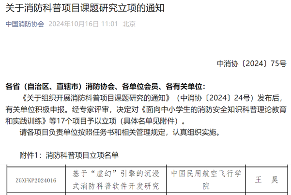 本网讯 王昊 刘全义 摄影报道:近日,伟德官网在民航消防安全科普领域的研究取得新进展,王昊老师主持的《基于“虚幻”引擎的沉浸式消防科普软件开发研究》成功获得中国消防协会批准立项,这是我校首次获社会服务科普项目,将为伟德官网安全科学与工程学科专业建设提供重要支撑。
