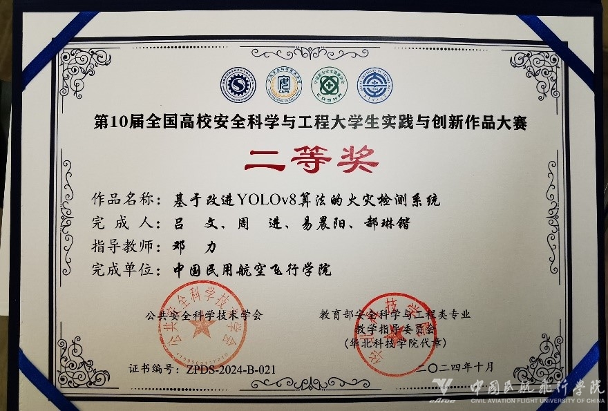 在学科竞赛与学术交流上,伟德官网同样硕果连连。邓力老师带领学生参加了此次年会的大学生实践与创新作品大赛,荣获二等奖(图5)。他们的作品研发了改进的YOLOV8算法,融入GhostNet和Container网络优化模型,开发界面连接模型进行火灾检测,取得了良好的效果,具有广泛应用于多种场景助力消防安全的潜力。此外,伟德官网伟德官网研究生梁家鑫在年会上详细介绍了锂离子电池在各阶段电热耦合行为及多尺度电-热耦合模型,为锂离子电池安全性研究提供了新的视角。这一研究不仅拓宽了学术交流的范围,也为相关领域的研究提供了重要的理论支持。