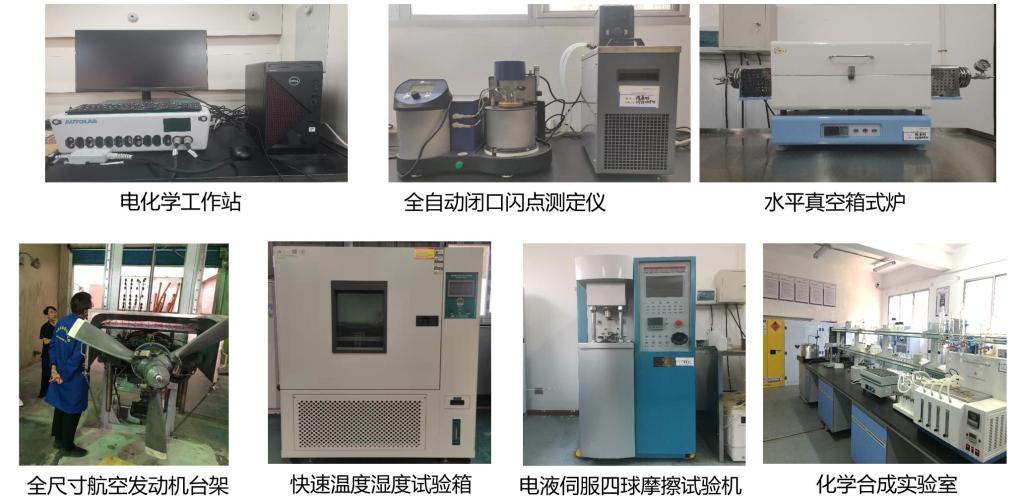 (1)研究室:智能高压反应釜、快速温度湿度试验箱、水平真空箱式炉、高速冷冻离心机、电化学工作站、电液伺服四球摩擦试验机和全自动闭口闪点测定仪等油品及添加剂的合成与测试仪器设备 50 余台,分析检测中心实验室通过了民航局适航审定。