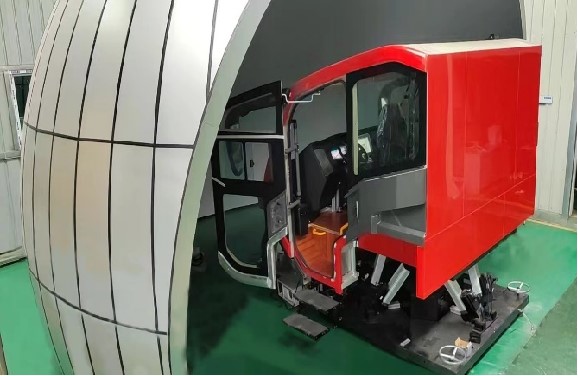 本实验室自主研发的全电驱动机场专用消防车模拟器,一比一还原实车,能模拟各项机场火灾实景,给学生提供实操途径。